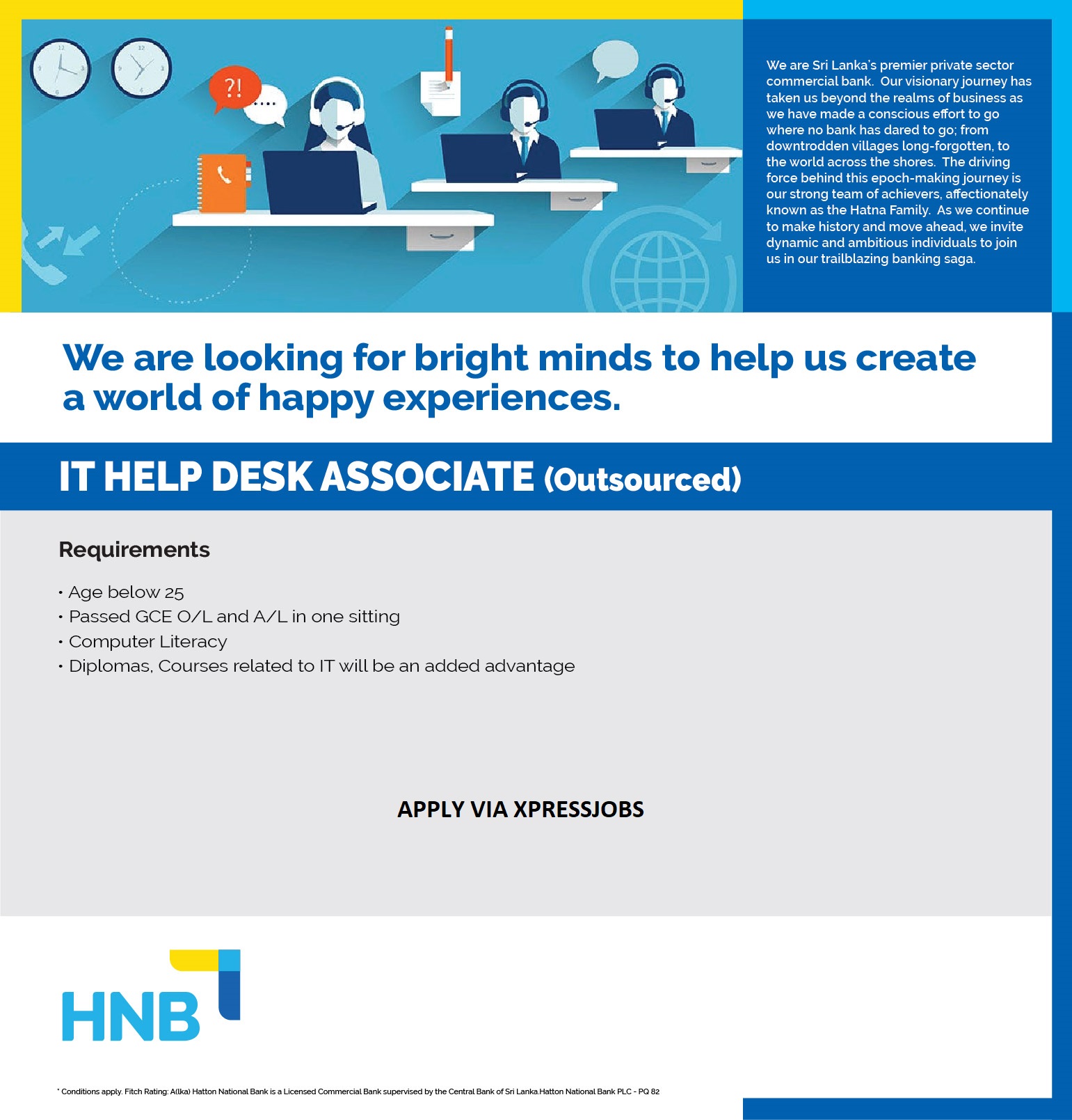 Join HNB as an IT Help Desk Associate (Outsourced)!