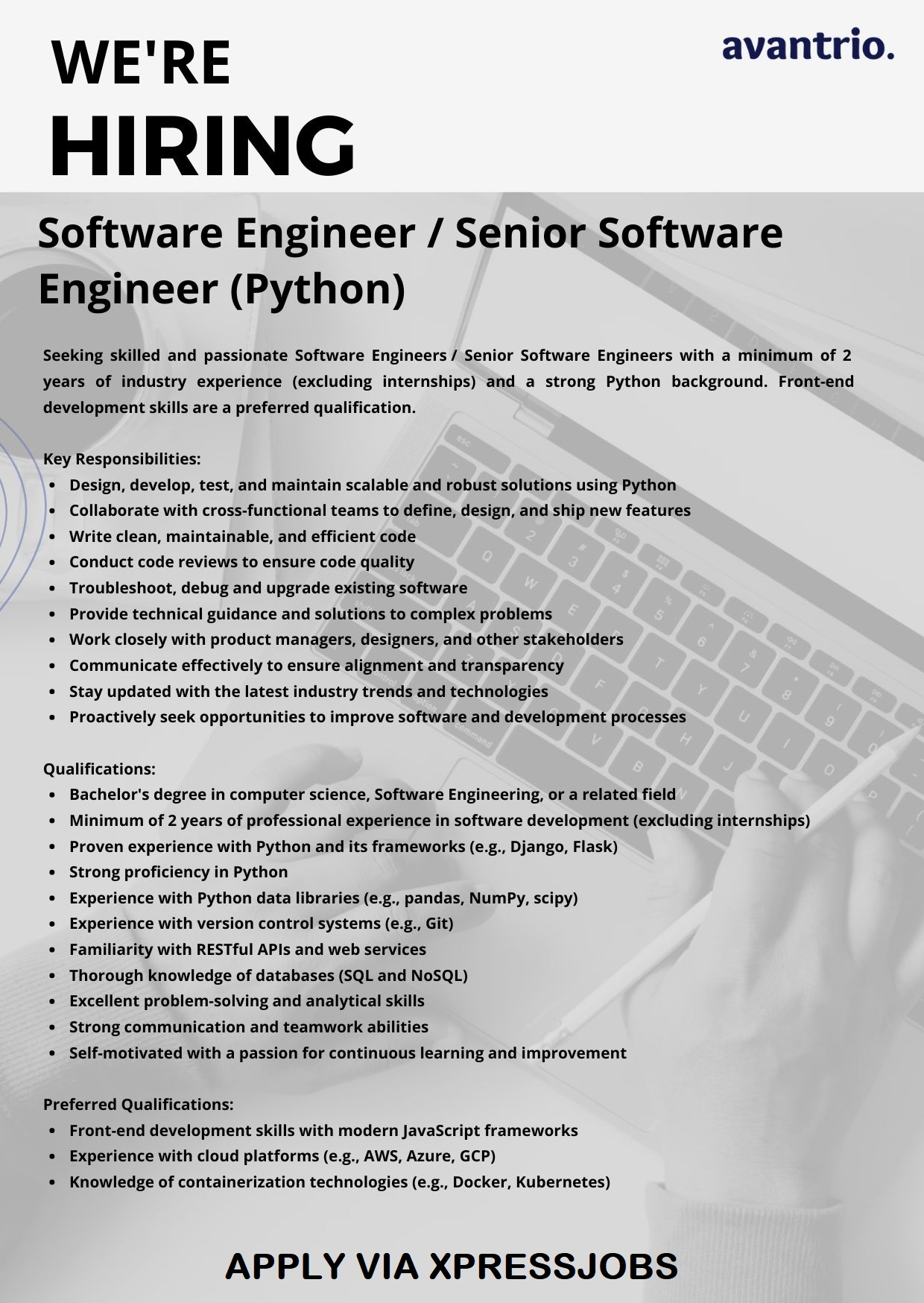 We are looking for passionate and skilled Software Engineers / Senior Software Engineers with a minimum of 2 years of professional experience (excluding internships) and a solid background in Python. Having front-end development skills will be a significant advantage.